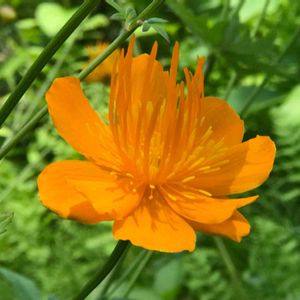 トロリウス🌸🌿 カンムリキンバイ‘ゴールデン・クィーン’ 昨年苗をお迎え🌿 今年は花数を増やして、ビタミンカラーのお花がやっと咲いてきました💕 花弁に見えるのは萼片とか! キンポウゲ科