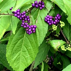 🍀🌻🪴💐🌹🌻🍀 🍀🤎ムラサキシキブ(紫式部)🤎🍀 💐ムラサキシキブの花言葉は(愛され上 手)、(上品)、(聡明)です 💐ムラサキシキブは秋の紫の実が美し い日本原産の落葉低木です 💐山地の湿地や森林に自生し、初夏に 華やかな実に比べると控えめな印象 の花が開花したあと結実し、実の色 はグリーン色から秋になるにつれて 紫色に染まります 💐ムラサキシキブはシソ科・ムラサキ シキブ属の落葉広葉樹、低木です 💐ムラサキシキブの花のサイズは3~ 5mm程で香りはなく、草丈は2~3m 程で開花時期は6~7月です 💐ムラサキシキブの開花時期は6~7月 で、実がつく時期は8~11月です、グ リーンから徐々に紫色になります 🍀🌻🪴💐🌹🌻🍀