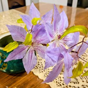 バルコニーにあるクレマチスをちょっといじってたら、ポロリと落ちてしまいました🥲 まだきれいに咲いているので、緑の急須(蓋が割れてしまってこの時のために🤭)を花瓶がわりにしてみました🤗 なかなかいい感じなのでは💕