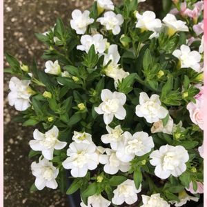 ご覧頂きありがとうございます♬ 「カリブラコア」 ウノダブル ホワイト ナス科 春の花と入れ替えにお迎え しました。ホワイトダブルの 清楚な花です💕☘️