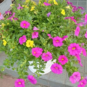 鮮やかなピンクを主に寄せ植えしました 🩷💛💜 今は、カリブラコアが目立ってますが、 1ヶ月後にはバランス良くなるかな〜✨ 楽しみです💗