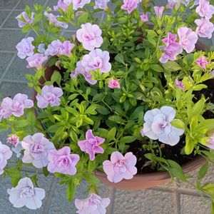 八重咲き カリブラコア モリモリになってきた✨ 一昨日の雨でぐちゃぐちゃになってたので、終わりかな?って思ってたら、、、復活⸜(* ॑꒳ ॑* )⸝ 後は、台風🌀の進路のみ、、どうなるのー?(¯∇¯;)