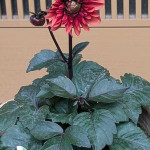 ダリア ラベラ・グランデ 咲き始めました♪ 蕾もポツポツついています お迎えした時はオレンジっぽかったけど、赤い花が咲いてきました(^^)
