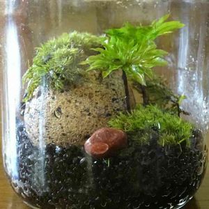 1ヶ月前に作ったコケリウム この時初めて 石に苔を着生させてみました 着いてくれたみたい🎵