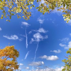 『皇帝ダリア🌸&飛行機雲✈️☁️☁️』 別の角度から 違う飛行機が…。 飛行機雲✈️☁️とのコラボです✨✨