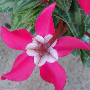 🍃♥️シクラメンジックス♥️🍃 花弁と萼のコントラストが可愛らしい💓 上から見ると萼の素敵さがわかります🎵 昨年初めて🔰知ったシクラメン''👀'' 園芸店で見つけて即お迎えしました⤴️ 大事に🥀育てまず💓💓💓 夏越ししたシクラメンが4つほどありますがまだ葉っぱだけです🌱 こちらも花が咲くのを楽しみにしています。picには、写っていません😅