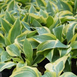 ホスタ「ウルバリン」 雨を浴びてイキイキ🌱 黄色の覆輪はお庭のアクセントに🙆♀️ 今日も元気に販売中!!