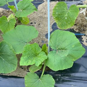 我が家の家庭菜園です。 今年は畑の真ん中に単管パイプで5m×5mの棚を増設しましたので、オモチャカボチャをたくさん植えました。 他にキウイフルーツ🥝と白ゴーヤも同じ棚で育てます。