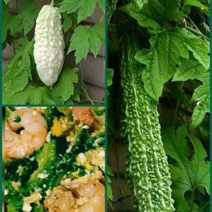 サンクエール💜🤍 葉が凄く茂ってるのになかなか実がつかないゴーヤ やっと実が付きました🎶簡単に出来ると思ってたけど調べてみたら違いました😅 親ツルには実がつかないので葉が5枚の所でカット✂️子ツルの葉も5枚でカット✂️らしいですね🙄 親ツルだけかと思ってたら子ツルもカット✂️…親ツルしかしなかったヮ…😅 雌花も雄花より少い…結構 実がつくには大変なのだ😣 でも何とか4本をゲット🎶 暑い時は苦味のゴーヤチャンプル〜😋 葉っぱが茂った中からシロゴーヤみっけ!シロゴーヤは苦味が少いらしい、まだ5センチ程 収穫が楽しみ🎶