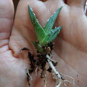 うちの唯一のアガベくんも植え替え。やっと一人部屋に。 思ったよりしっかり根がでてた! この子なんて子かなぁ。