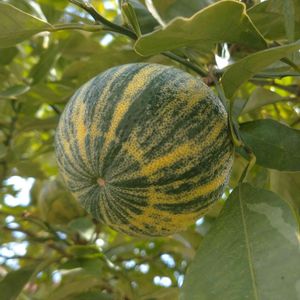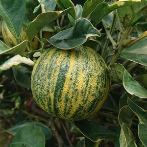 近所の公園にある柑橘だと思うのですが… 縞模様のこれは何でしょう?😲 ご存知の方、教えてください😊