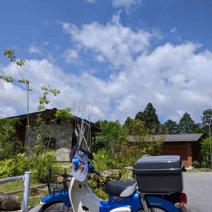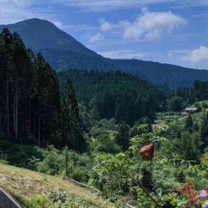 山の喫茶店前にて…… バックの建物は個人宅で〜す! もちょっと先に喫茶店はあります。