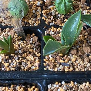 今日は朝から、植え替えをしていました。 (明日からまた出張なので、きちんとお世話しておかないとね👍😊) G Sで知り合った方からアガベを頂き、あっと言う間に10種類になってしまいました。 (めちゃくちゃ嬉し〜い😂) でも、頂いた物を枯らす訳にはいかないのでプレッシャーが………😅 (初心者なのに、高価なアガベを頂いていいのかしら) で、植え替えした、小さな子達紹介しました。元気に大っきくなってね〜🙏🏻 高価な物が増えたので、不在中に取られないかも心配です〜😅