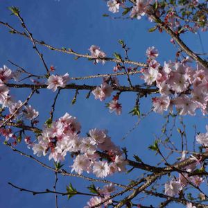 淡路島夢舞台公苑で桜が咲いていましたが横文字の桜です🌸 1 アーコレード🌸 英国で大山桜とコヒガンの交配により育成された品種 日本では春と秋の二季咲きになっている 十月桜に比べ花が大きく 花色もやや濃色の美しい品種です 2 ウォーウィック🌸 海外から導入された 十月桜に近似の品種 こちらも春と秋の二季咲きのサクラです 3 こちらは他所でたくさんの花を付けていた十月桜です🌸