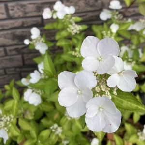 アジサイひなまつり🎎 ガク咲きで… 八重咲き 姉から昨年挿し木してもらった かわい子ちゃん💓 すごく小さい鉢なので 鉢増ししてあげなくちゃ💦
