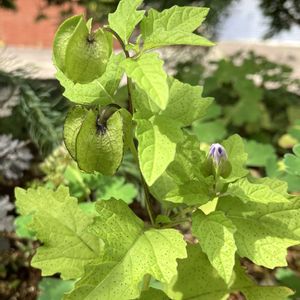 え…… 花は一度も見てないのに 実が2つ💧💧 蕾があるようなので 明日は見落としのないように。。。 でも日が昇る頃から昼近くまで 雨予報☔☔☔ 花見れるかなぁ 零れ種からの黒ホオズキちゃん💜
