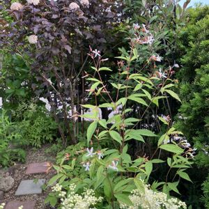ロクベンシモツケも 咲き始めました¨̮♡︎¨̮♡︎ 蕾が重過ぎのせいか 開花前は‥項垂れてます🤣
