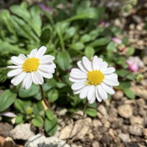 ①ペビリアンデージーが咲き始めました ❤︎*.(๓´͈ ˘ `͈๓).*❤︎ 後ろ姿が可愛くて撮りたかったけど 花の位置がちょっとまだ低すぎて無理だった😅 ②🪴のロサ・カニナ 葉っぱがちょっと痛んでる(何度か水枯れしちゃったせいかも😢)けど最初の花が咲きました🌸 本当は地植えにしてあげれるといいんだけどなぁ💦 ③小さいから花はまだまだだろうなぁ。。。と思っていたけど✨ 蕾2つ見つけました🌸🌸