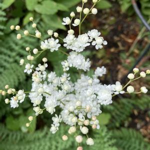 八重咲きロクベンシモツケも 咲き始めました〜〜 コロコロの蕾は 一重咲きのと同じだけど… 咲くと色も形も違う〜🤍 明日はもっとたくさんかな🤍 ワクワク♪︎o(・ω・o)(o・ω・)oワクワク♪︎