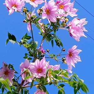 おはようございます🤗 ✨皇帝ダリア✨ ご近所さんの玄関先で咲いている皇帝ダリアです。 屋根よりも高く青空に映えてとっても素敵でした😊