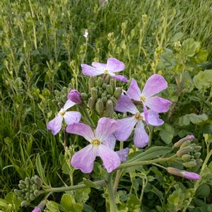 今日のお花ダイコンです ①②今年4月に空き地で咲いてた浜大根の花畑③⑤友達の畑の大根④唐辛子