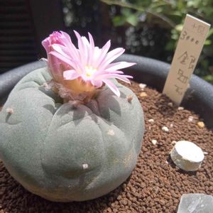 ロフォフォラ属 銀冠玉 昨日、ニョキッと蕾が出たと思ったら朝から咲いてくれましたよ🥰 9時~13時早いな🤔 午後は見逃す事が多いのでラッキー👍 春から水多めでパツンパツンで育ててるんですけどね、翠冠玉3mm位大きくなりましたよ🥰👍 銀冠玉 直径6cm 翠冠玉 直径4.1cm ロフォフォラは自家受粉( ≖ᴗ≖)وニヤッ!! 🏷かずのロフォフォラ