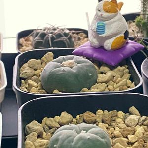 小さなロフォフォラ君 高温が好きと聞いたので 遮光してたものの 40数℃になる炎天下に置いてました 最近少し涼しいのでお水をやってみたら膨らんだ! どうやら本当に暑さには強い⁉️ 高温でこわくてあんまりお水あげなかったけど もっとあげればよかったのかなあ〜笑