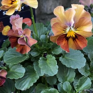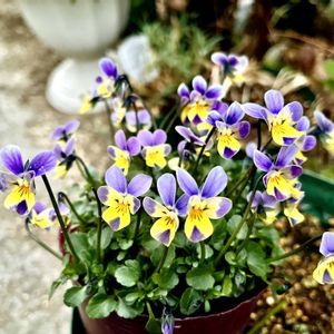 ビオラ、日光浴です。😃 南側でも日中は場所を移動しないと、上手く陽が当たりません。😓 他の🪴鉢植えも日向ぼっこ。😃☺️💮