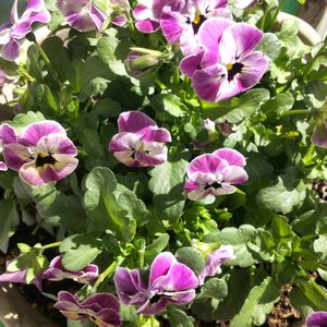 満開ビオラ♡ 鉢植え ➀クレール・ドゥ・リュンヌはサトウ園芸さん ②なごみももか・しんしん ➂リトルコニー&ヘブンリーブルー 思いの外綺麗だった2色💜🩵 地植えは見元園芸さん ➃ASIAN BEAUTY🩵 うちのアジアンビューティーは水色 ⑤シェリルの片思い🐶 めんこい😍 急に暑くなって徒長しそう😅 このままキープして欲しいです