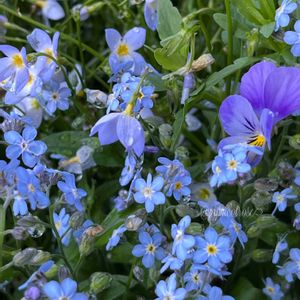 おはようございます😃 薄い雲があるのにお日様の光が勝っている空です☀️ 暑くなるんだなぁ😅ヤダ まだぼんやりとした春の陽射しを楽しみたいのに。 涼しいうちに動きましょう。 今日はブルーの寄せ植え🩵 ①ヒナソウとビオラ・リトルコニー、ワスレナグサ、キングフィッシャーデージー 小花ばかりで可愛らしい🥰 ②秋に作ったドラキュラ様の寄せ植え✨ 冬の間も楽しめましたが、春先にハボタンをキングフィッシャーデージーに取り替えました。 暖かくなってネメシアが爆発💥 キングフィッシャーデージーもたくさん咲いてモリモリです😆