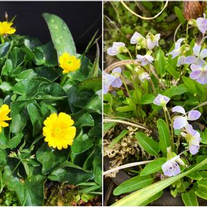宿鉢占領中の鉢2つ。 左はホトトギスの鉢にヒメリュウキンカ🌼。ヒメリュウキンカは夏前には休眠してしまうので花どうしが出会うことはありません。右は大輪トキソウ🌸の鉢にシロバナスミレ。大輪トキソウは球根は立派なんですが全然咲きません💦咲くとしたら今頃なんだけどな〜😅