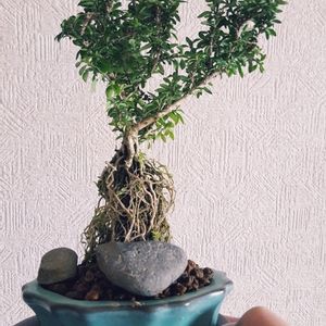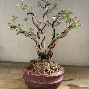 取り敢えず、ネットの写真を参考に仕立ててみた。初盆栽。アドバイス是非。