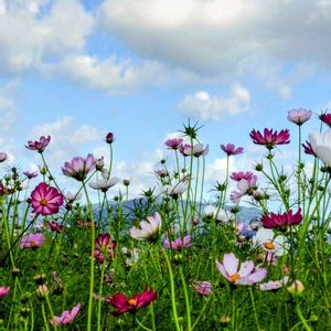 おはようございます😊 今日の天気は晴れ☀️ 最高気温17度 最低気温12度 お出かけ先🚙•*¨*•.¸¸🌸*・🌼 コスモス畑(読谷村) より🌸 🌿🌸コスモス(秋桜)🌿🌸 昨日〜読谷村にあるコスモス畑へ 行って来ました💕🌸🌸🌸 時折り曇がかかっていましたが… まずまずの天気〜🌤️ ピンクや白、赤など鮮やかなコスモス100万輪が満開〜🌸見頃を迎えています💕🌸🌿🌼🌿🌸 コスモス畑を散策していると…コスモスの花の中に菜の花🌼を見っけ〜💕👀 コスモスの花に混ざって菜の花が🌼咲いています💕🌸🌿🌼🌿🌸 沖縄ではコスモス🌸菜の花🌼は1月頃から開花します🤗 このコスモス畑は観光協会が 元々…村おこしの一環で村保有地にコスモスを植えたことが始まりです❣️ 科属名 キク科コスモス属 アキザクラ(秋桜)とも言う。 開花期 6月~11月 沖縄では1月~3月 花 色 ピンク、白、濃赤、 黄やオレンジ色、複色 花言葉 「調和」「謙虚」「乙女の真心」 「乙女の純潔」「優美」 「美麗」など 🌸•*¨*•.¸¸☆*・🌿🌼🌿•*¨*•.¸¸☆*・🌸