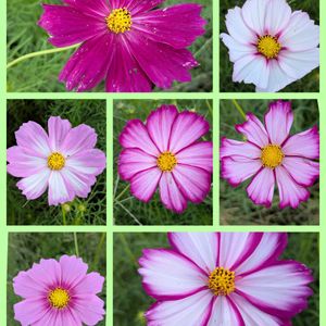 今日のお花 コスモスꕤ︎︎🌿 1⃣ 今年咲いた お庭のコスモス 2️⃣3️⃣4️⃣ コスモスアリーナふきあげ コスモス畑にて 昨年の写真です🌸🌿 🫒🌿🌿
