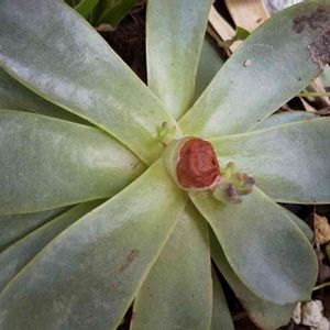 多肉を集め出して間もない頃,初めて根腐れなるものを経験したデレンオリバー。 数年前のある日,ふと見ると成長点以外の葉と茎が真っ黒になっているのを発見して,慌てて腐った葉を取り除いて茎の黒い部分をカット。2,3日して見るとまた茎の下の方から真っ黒に。 今度はダメ元で成長点ギリギリのところでカットしてしばらく乾燥させると,なんと小さな白い根が。慌てて土に植えたところ奇跡的に復活して今日まで生き延びている。 復活はしたけど,子株は全く出ないし一本立ちで茎が伸びるだけ。だけど,思い入れのあるエケベリア。
