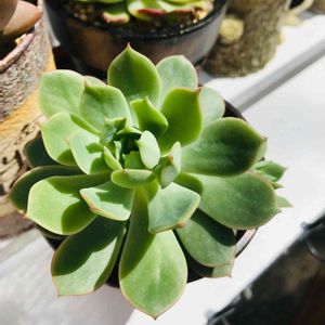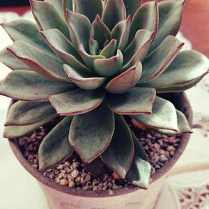 今日寒いでいます😊 ずーと家でお留守番していた多肉ちやん(エケベリア デレンオリバー)の縁が赤くなってステキになっていました🌱🌵💕