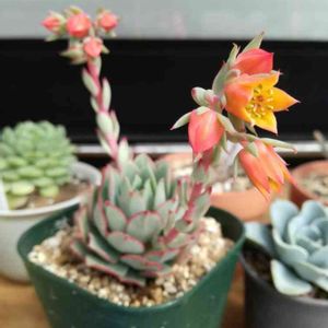 ベランダの棚、下の段で徒長しまくりの舟型花器寄せに一部そのまま😂(笑)一部カット✂️し二代目大和高原の多肉屋さんの苗を追加しやっと仕立て直しました😁 って 同じ場所はまた徒長するよね💦 どこに置こう😅 マジカルキューティをカット✂️して挿して増やし😊 3ポットに~😂 カット✂️ばっかりしてたからなかなかお花🌼咲かなかったけど💦 今日初めて可愛いお花🌼が咲きました😍 木箱寄せの中に居るデレンオリバーさんのお花🌼長く伸びた花芽やっと咲いたのでこのあとカット✂️しました😁