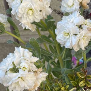 寄せ植えの中の白い八重咲きストック🤍 寒さに負けず強くて元気な姿に 癒されてます🥰💕✨ あら?ちょっと枯れてる所あるけど 綺麗だからいいか😅 ご勘弁🙏