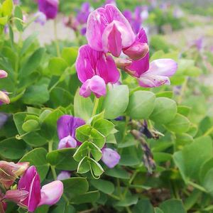 浜辺には、こんな可憐な花も。エンドウ豆のような実も付いています。