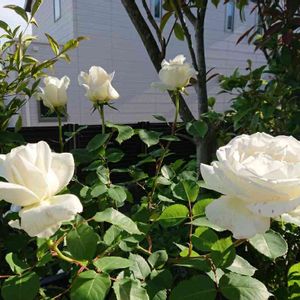 白薔薇さん、暑い中元気に咲いています✨️🤍🤍🤍🌹 🏷水曜ローズショー、参加させて下さい🤍