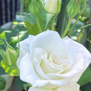 白い薔薇、綺麗に咲いています〜白いお花は涼を感じますねぇ✨🩵🩵🩵💫 🏷水曜ローズショウ、参加させて下さい🌹