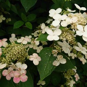 ダルマノリウツギ アジサイ科 アジサイ属 6月30日にupしたダルマノリウツギの装飾花が白から薄いピンク色に変化しました♪