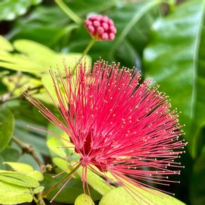 四季咲き緋ネム 真っ赤でシャワシャワしたお花が可愛い子です❤️ ネムノキというと大きな木のイメージがありますが、この子はとってもコンパクト✨✨ 四季咲きというだけあって、何度もなんども蕾をつけてくれます❤️❤️ 蕾もまるがたくさん集まってかわいいのです😍😍 ネムなので、夕方になると葉っぱも閉じて寝ちゃいます😆