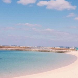 ビーチ②🏖️ ビーチに面して公園があります 昨日は良い天気で、空が青い☁️