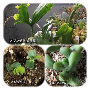 おはようございます😃 一斉紹介(28)です〜❗️🤗 サボテン科 オプンチア属 アメリカ メキシコ 南米原産、団扇サボテン達です〜❣️🥰 ⭐️姫団扇(76) Opuntia brasiliopuntia❗️ 昨年まではあまり成長しなかったのですが、植え替えしたらモリモリ成長して来ました❗️🤗 土が変わったのが良かったのかなぁ❣️🥰 ⭐️大丸盆(327) Opuntia robusta❗️ ダイソーサボちゃんです❗️🤗 凄く大きくなる子です〜❣️🥰 ⭐️紅花団扇(349) Opuntia bergeriana❗️ ダイソーサボちゃんです❗️🤗 花はまだかなぁ❣️🥰