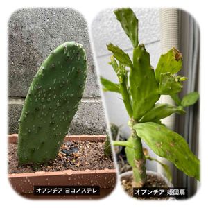 ほぼ1年後の姿シリーズ vol.210 サボテン ※姫ウチワ(ダイソー産で名前なしにつき、多分) 右 去年10月 左 今年10月 少し伸びたかな程度。 最近投稿していた成長比較のサボテンたちのような成長をしていない。 来年マグァンプK入りの鉢替えしてあげようかな。