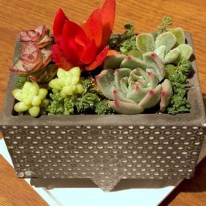 こんばんは! 夜中にチマチマと寄せ植え作ってました🤪 でも、ちっちゃいセダムがポキポキ折れてポロポロ取れて。。。 隙間をチマチマで埋める寄せ植えは初めてだったので全然上手くいきませんでした😭 素敵な鉢が全然活かせませんでした😫 取れた葉っぱが奇跡的に育ったらリベンジしたい😅