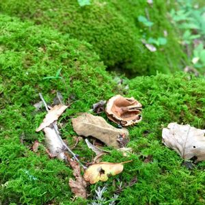 岩手県の遠野にある五百羅漢で見つけた苔です♪ リスさんが食べたクルミの殻が落ちていました♡