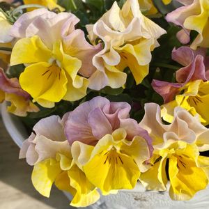 【ビオラの寄せ植え】その後 ビオラ任せの寄せ植え また少し咲き進みました😄 『フロステッドチョコレート プレミアム』 『花ろまんすみれ ピンクレインボー』 『ときめきスミレ プレミアム』 『ときめきスミレ』さんにがんばれ〜🤭 フロチョコさんが溢れてきた⑤ので 右の方と後ろの方カットして挿し芽にしてみました。 あちこちで咲いてくれたら嬉しいなぁ☺️