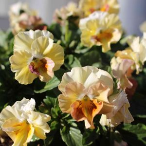 「ビオラ ミルフル アンティークフリル」です✨ ミルフルさん、花数が増えてきました~💛 お花が小さくてとっても可愛いです🎶 優しい色合いのミルフルさん、寒いバルコニーで私を癒してくれています🥰